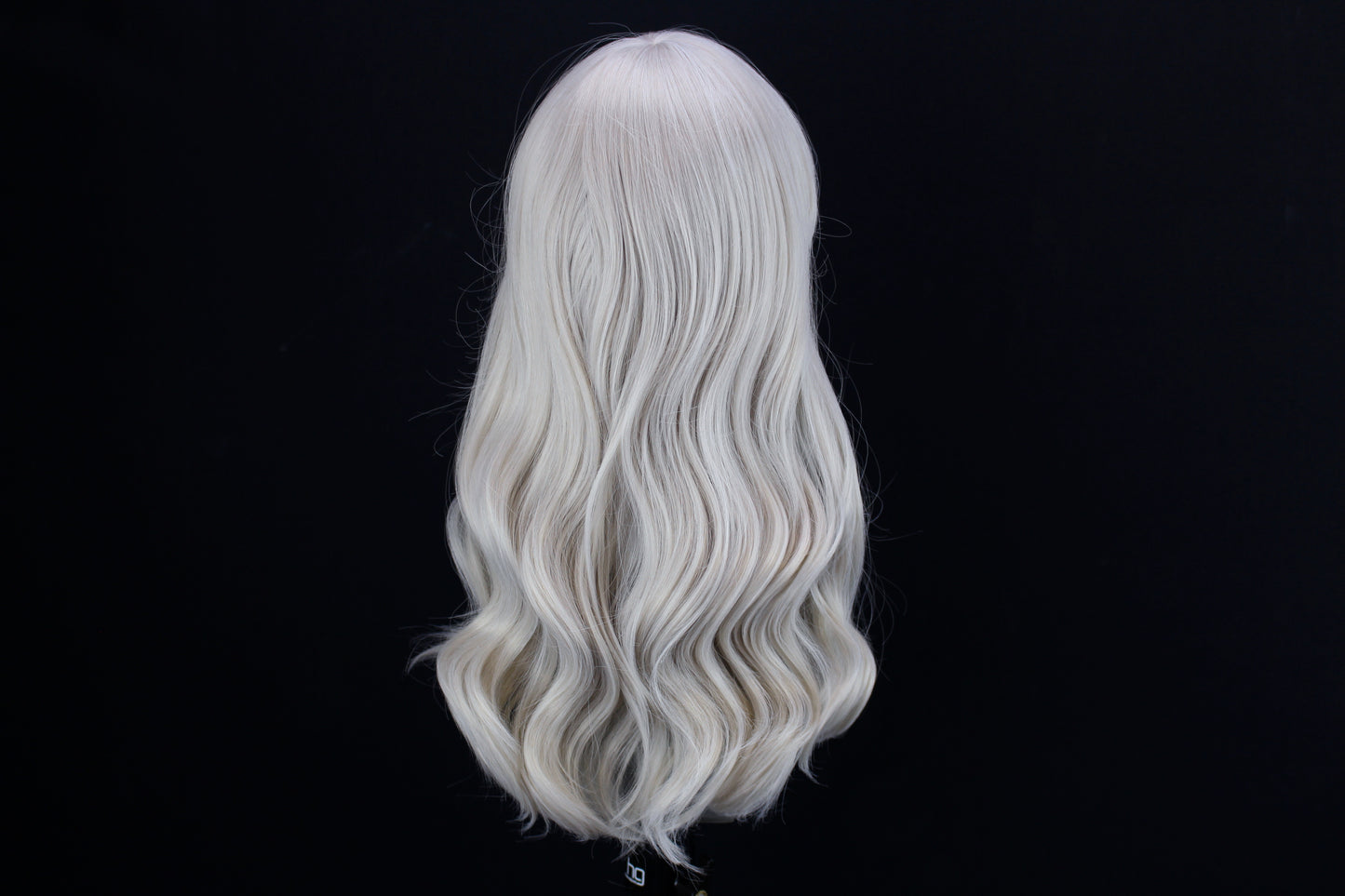 She is a non lacefront wig with a blunt cut fringe and a skin top parting at the crown for a more realistic looking part.