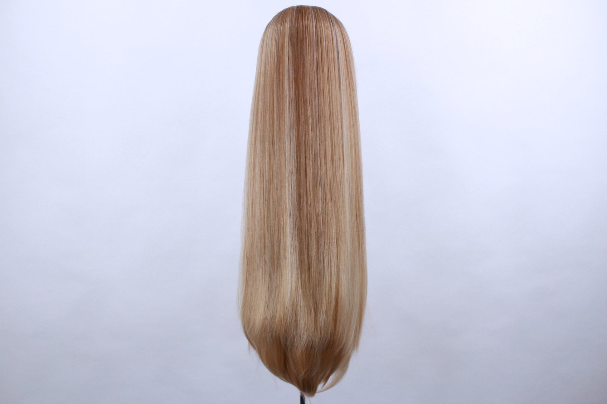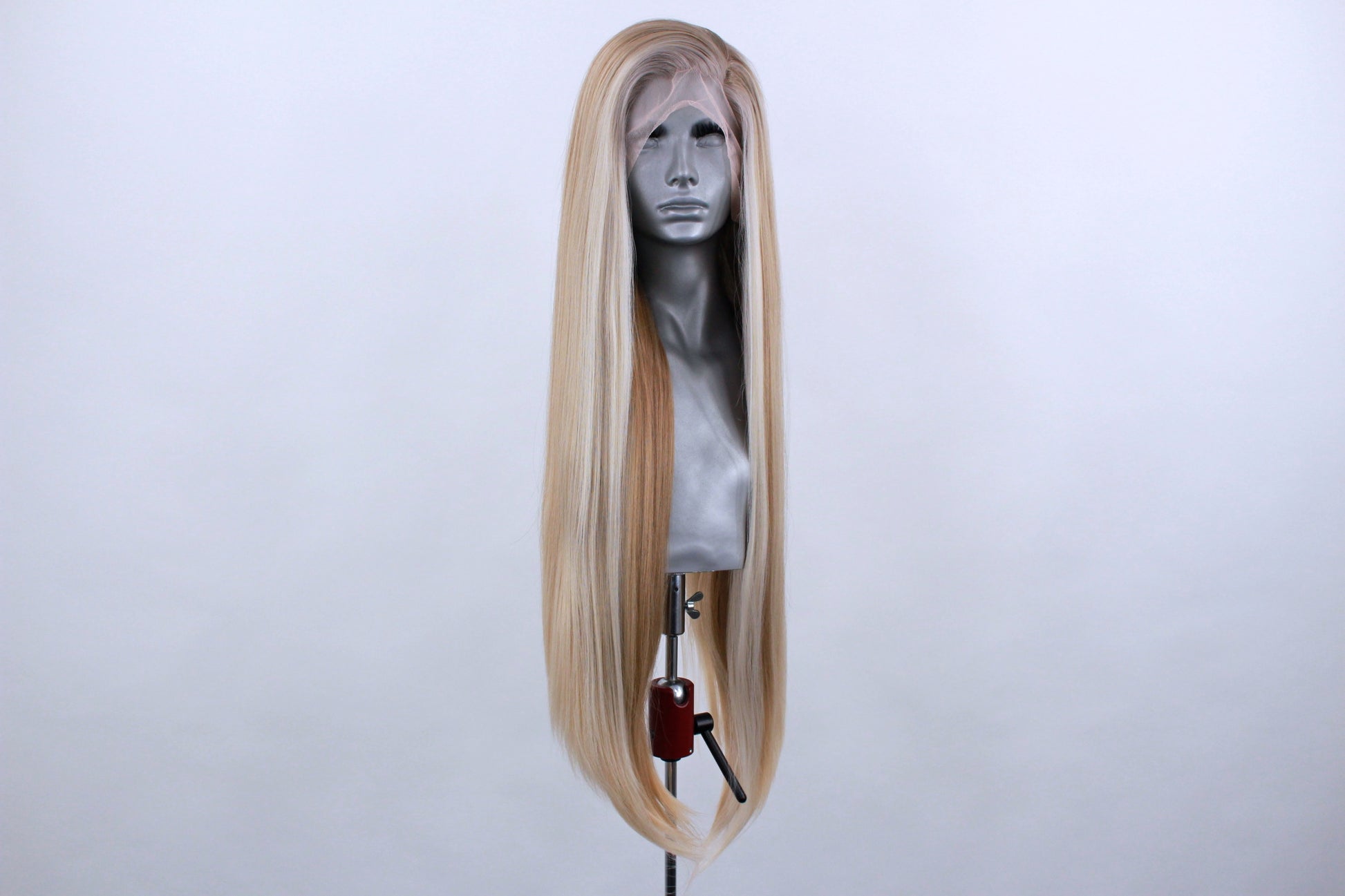 The colour is - An Ashy Grey rooted Golden Blonde blend with a Bleach Blonde front edge and highlights