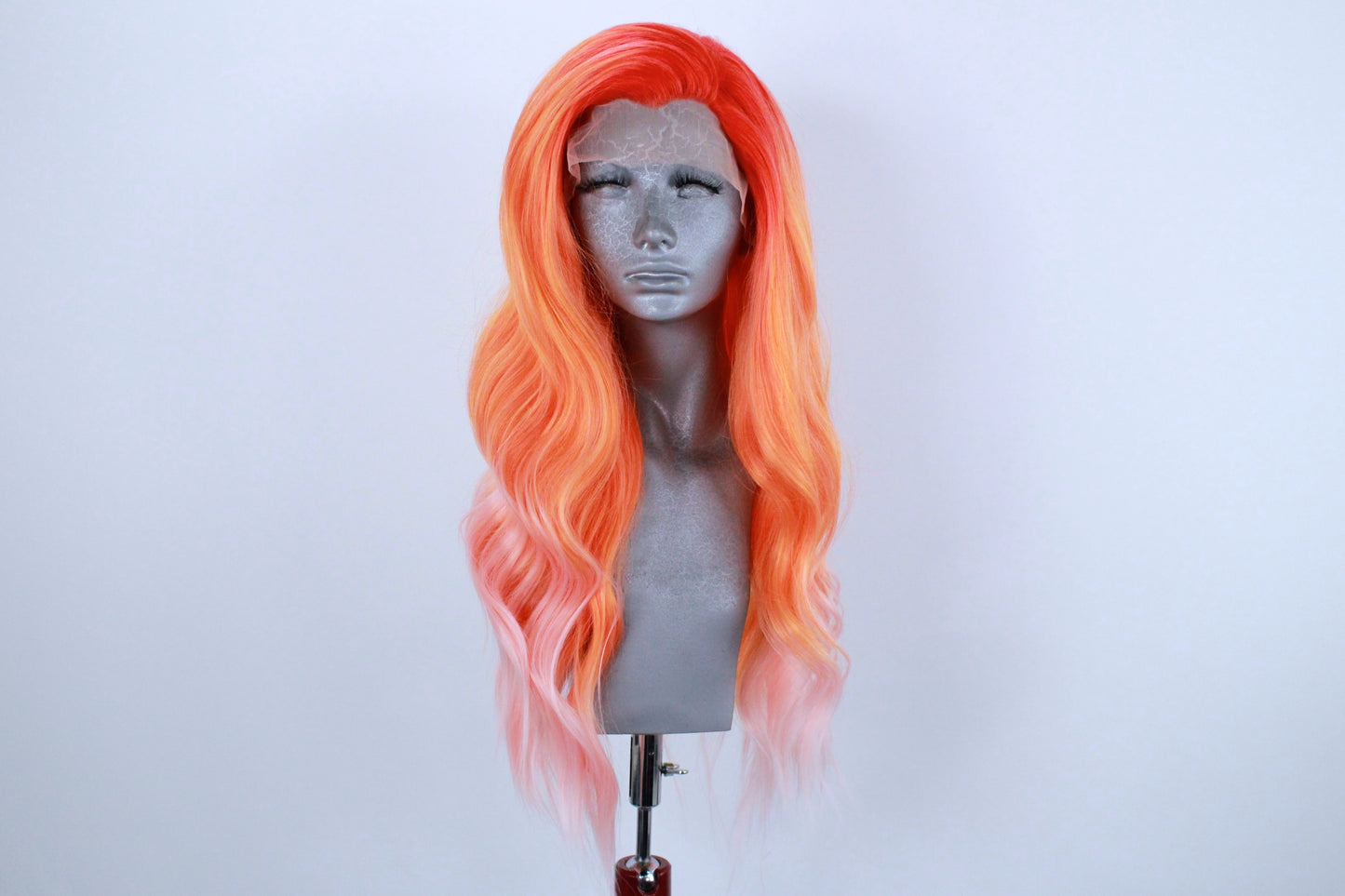 The colour is - An Orange Rooted Peach into Pastel Pink Tips