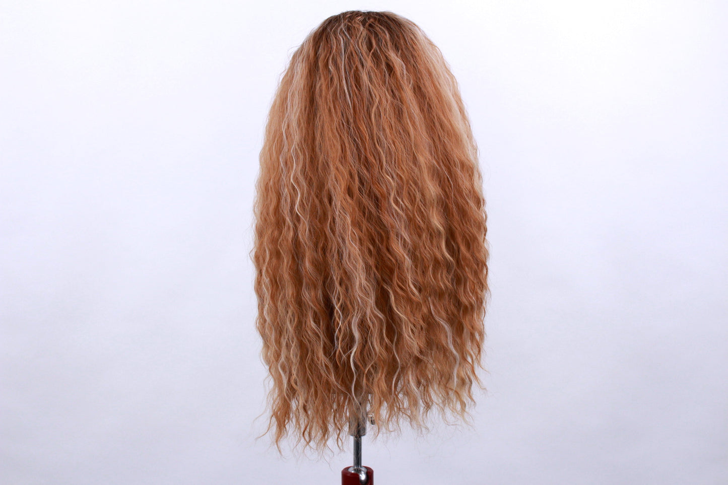 She is made from a high quality heat safe synthetic fibre meaning you can use heat tools up to 170c degrees to curl or straighten her.