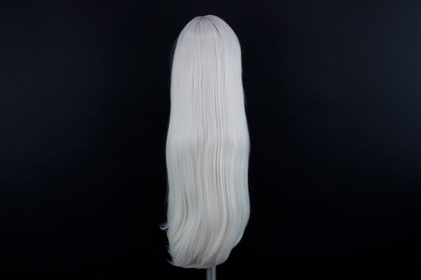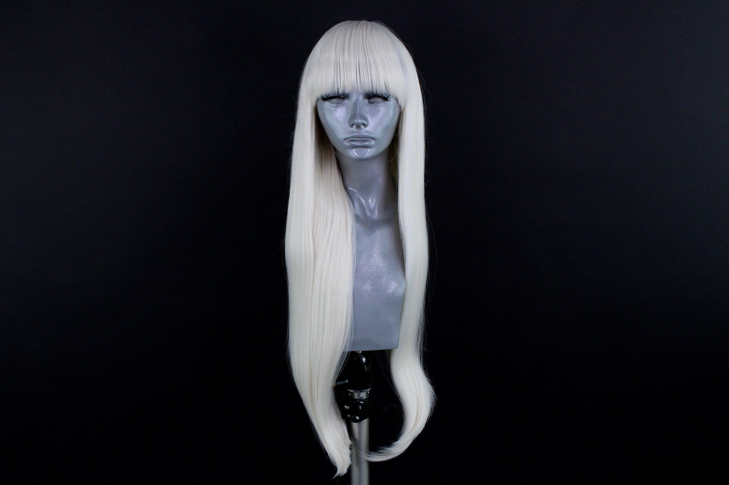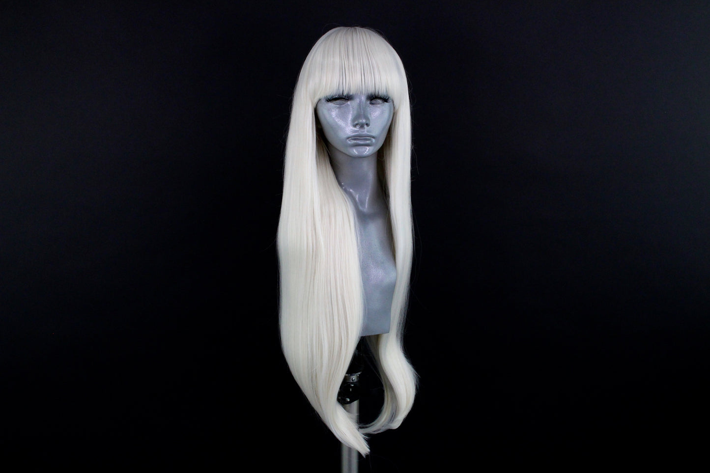 She is a non lacefront wig with a blunt cut fringe and a skin top parting at the crown for a more realistic looking part.