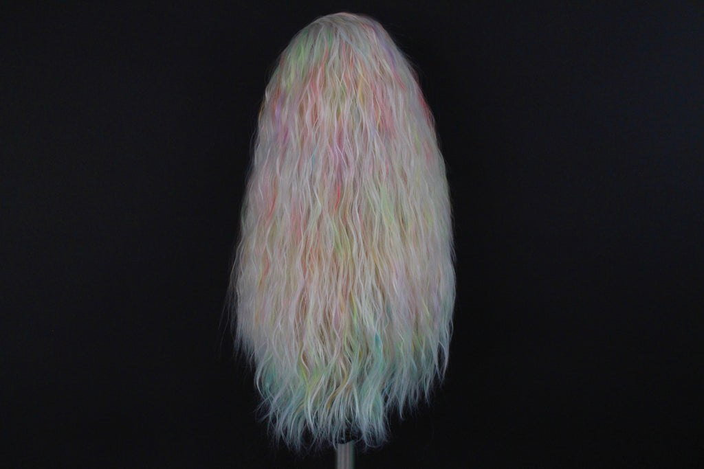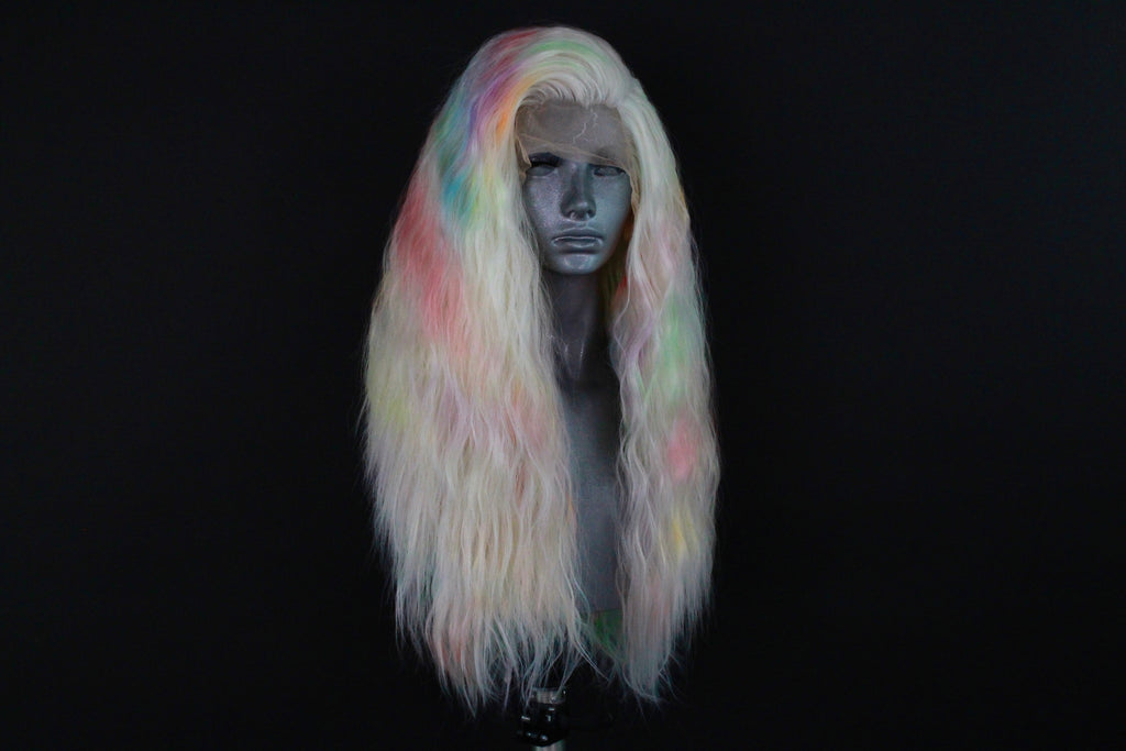 Please note as each wig is individually dyed the colour placement of the rainbow splash will differ from wig to wig