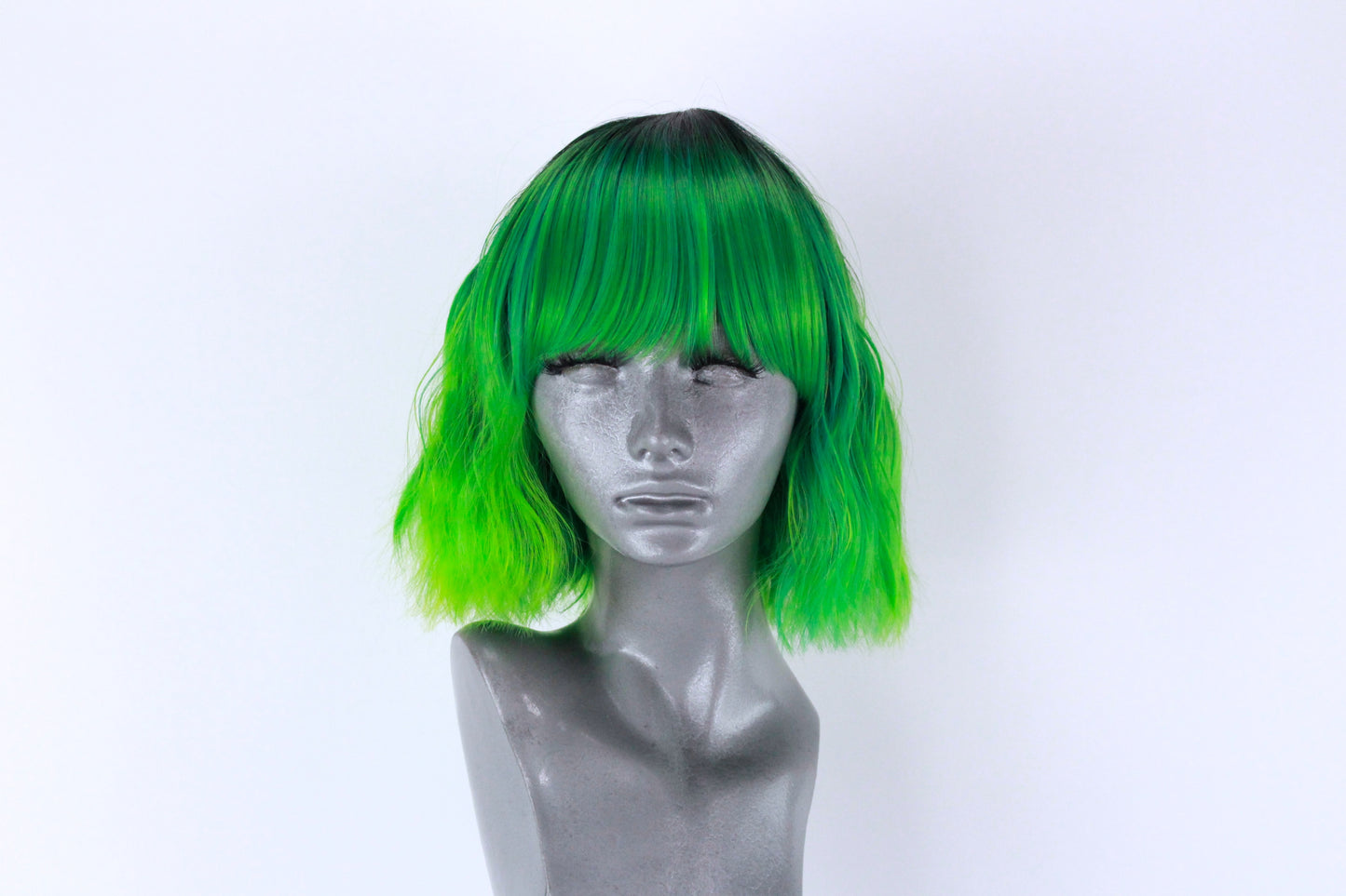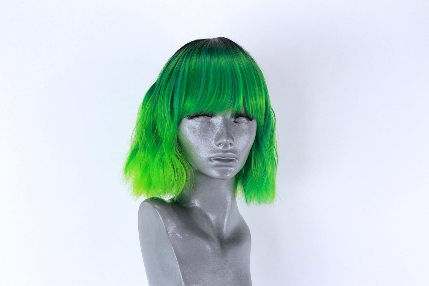 She is a non lacefront wig with a blunt cut fringe and a skin top parting at the crown for a more realistic looking part.